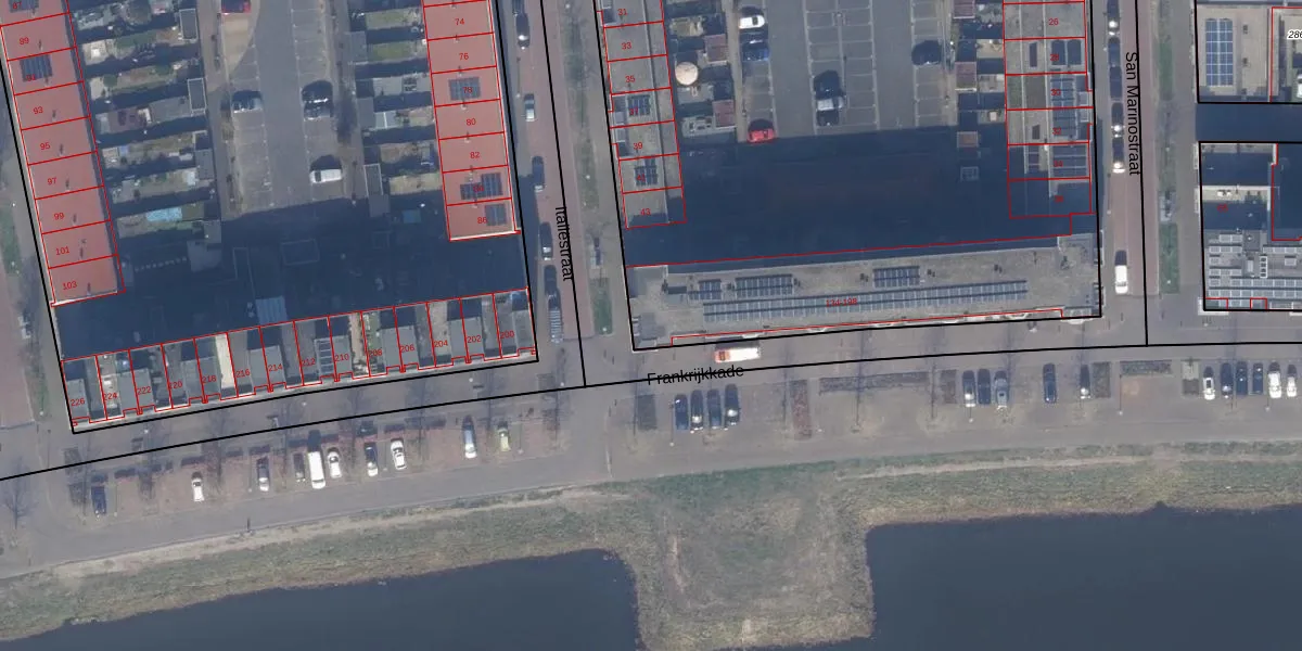 Het perceel waarop Frankrijkkade 198 staat heeft een oppervlakte van 1,2 ha. Dit is een zeer groot perceel. De perceeloppervlakte wordt geregistreerd door het Kadaster. Gedetailleerde informatie over de maten van dit perceel kunt u vinden in het rapport Kadastrale kaart met maatvoering van Frankrijkkade 198.