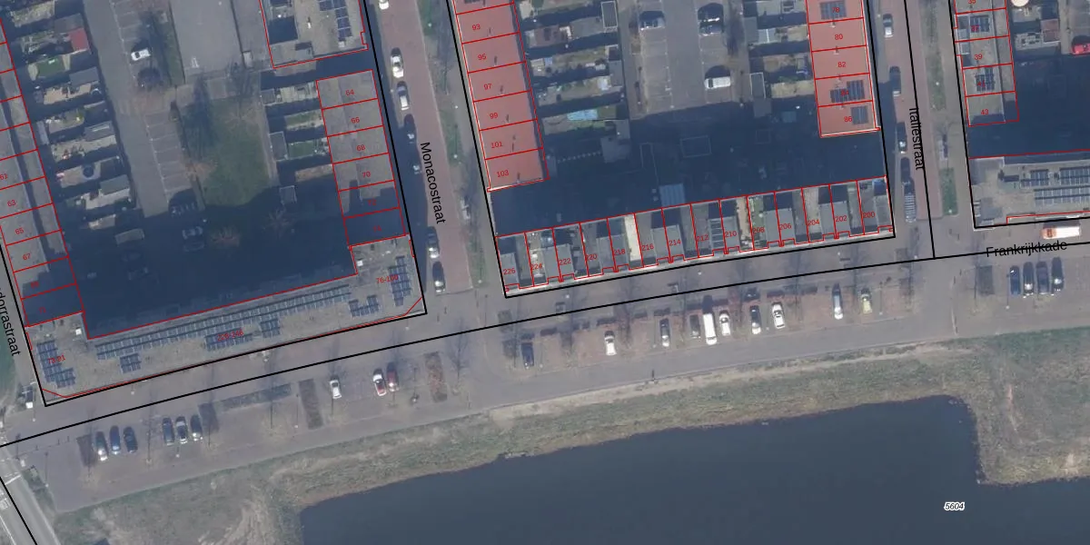 Het perceel waarop Frankrijkkade 224 staat heeft een oppervlakte van 1,2 ha. Dit is een zeer groot perceel. De perceeloppervlakte wordt geregistreerd door het Kadaster. Gedetailleerde informatie over de maten van dit perceel kunt u vinden in het rapport Kadastrale kaart met maatvoering van Frankrijkkade 224.