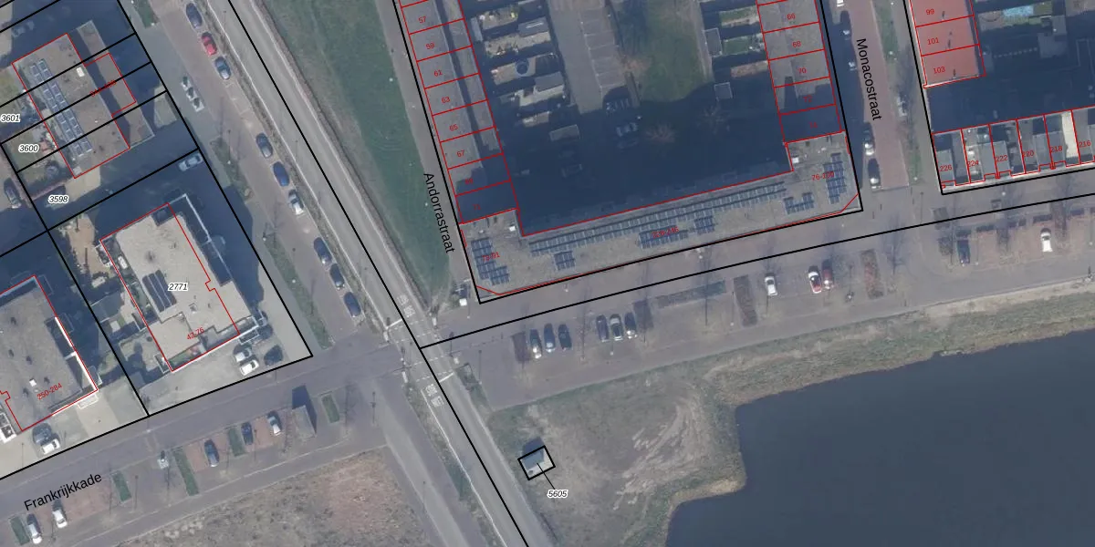 Het perceel waarop Frankrijkkade 246 staat heeft een oppervlakte van 1,2 ha. Dit is een zeer groot perceel. De perceeloppervlakte wordt geregistreerd door het Kadaster. Gedetailleerde informatie over de maten van dit perceel kunt u vinden in het rapport Kadastrale kaart met maatvoering van Frankrijkkade 246.