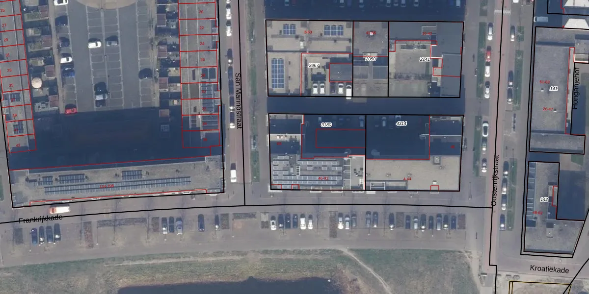 Het perceel waarop Frankrijkkade 88 staat heeft een oppervlakte van 840 m². Dit is een groot perceel. De perceeloppervlakte wordt geregistreerd door het Kadaster. Gedetailleerde informatie over de maten van dit perceel kunt u vinden in het rapport Kadastrale kaart met maatvoering van Frankrijkkade 88.