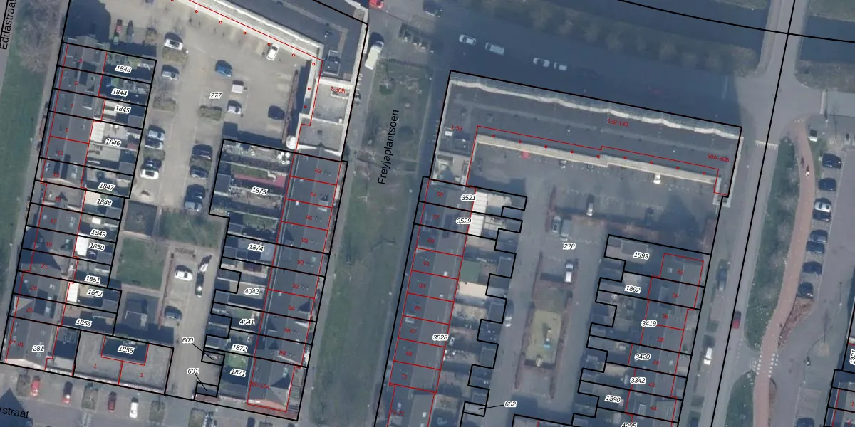 Het perceel waarop Freyjaplantsoen 57 staat heeft een oppervlakte van 122 m². Dit is een middelgroot perceel. De perceeloppervlakte wordt geregistreerd door het Kadaster. Gedetailleerde informatie over de maten van dit perceel kunt u vinden in het rapport Kadastrale kaart met maatvoering van Freyjaplantsoen 57.