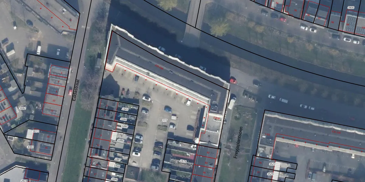 Het perceel waarop Freyjaplantsoen 64 staat heeft een oppervlakte van 3827 m². Dit is een zeer groot perceel. De perceeloppervlakte wordt geregistreerd door het Kadaster. Gedetailleerde informatie over de maten van dit perceel kunt u vinden in het rapport Kadastrale kaart met maatvoering van Freyjaplantsoen 64.