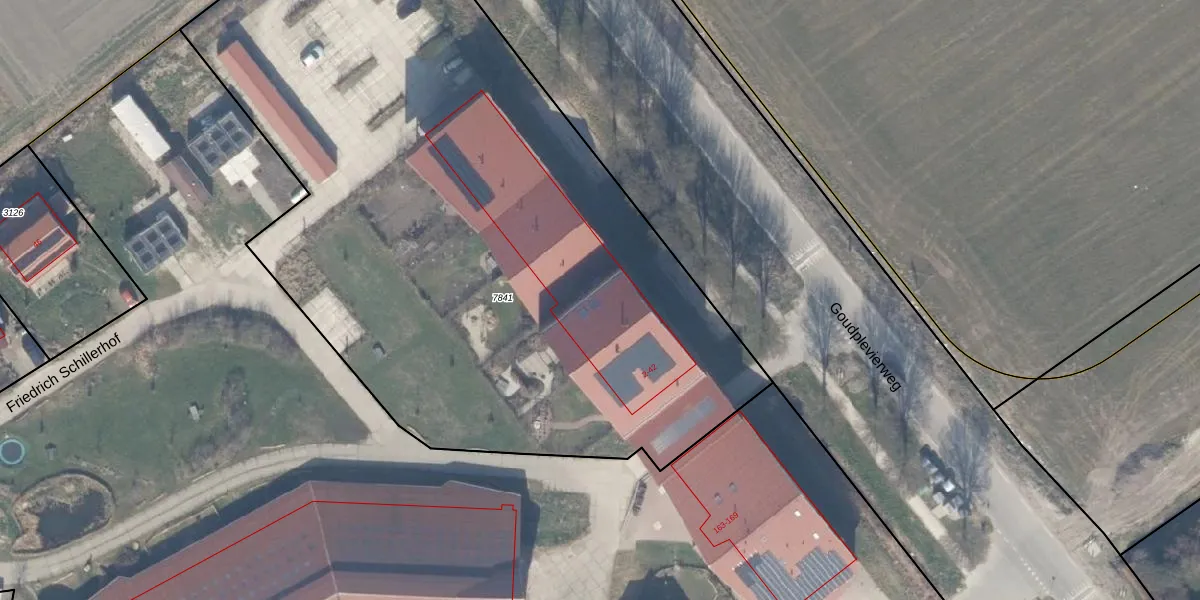 Het perceel waarop Friedrich Schillerhof 2 staat heeft een oppervlakte van 4895 m². Dit is een zeer groot perceel. De perceeloppervlakte wordt geregistreerd door het Kadaster. Gedetailleerde informatie over de maten van dit perceel kunt u vinden in het rapport Kadastrale kaart met maatvoering van Friedrich Schillerhof 2.