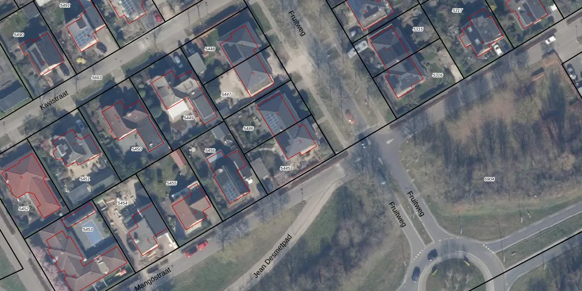 Gebruik de zoekbalk of klik op een perceel voor informatie over de adressen binnen dit perceel.