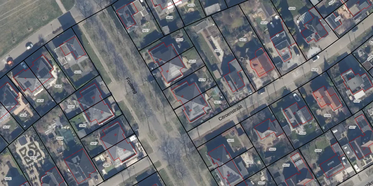 Het perceel waarop Fruitweg 36 staat heeft een oppervlakte van 326 m². Dit is een groot perceel. De perceeloppervlakte wordt geregistreerd door het Kadaster. Gedetailleerde informatie over de maten van dit perceel kunt u vinden in het rapport Kadastrale kaart met maatvoering van Fruitweg 36.