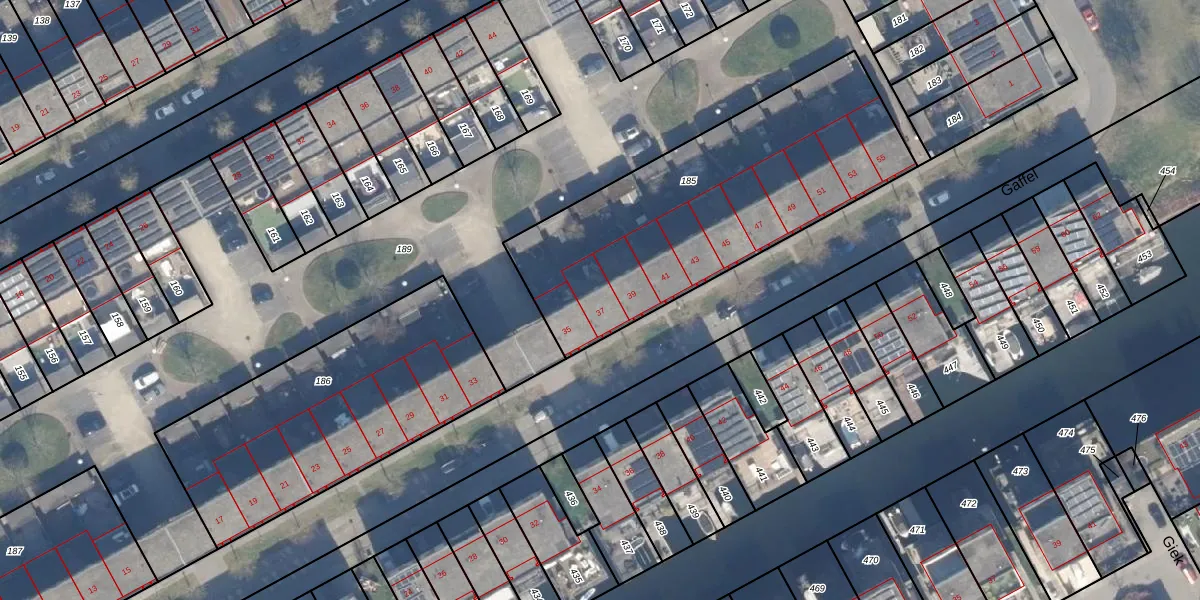 Het perceel waarop Gaffel 37 staat heeft een oppervlakte van 1471 m². Dit is een zeer groot perceel. De perceeloppervlakte wordt geregistreerd door het Kadaster. Gedetailleerde informatie over de maten van dit perceel kunt u vinden in het rapport Kadastrale kaart met maatvoering van Gaffel 37.