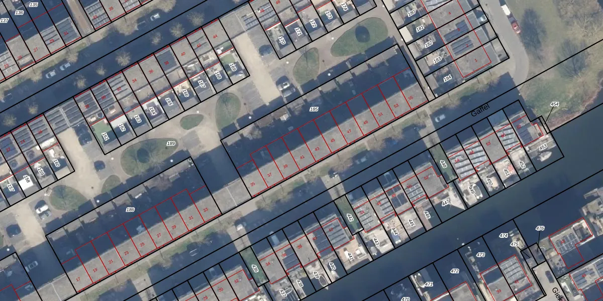 Het perceel waarop Gaffel 41 staat heeft een oppervlakte van 1471 m². Dit is een zeer groot perceel. De perceeloppervlakte wordt geregistreerd door het Kadaster. Gedetailleerde informatie over de maten van dit perceel kunt u vinden in het rapport Kadastrale kaart met maatvoering van Gaffel 41.