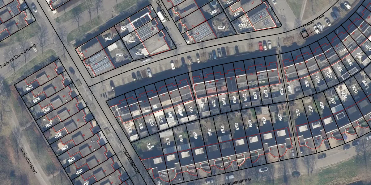 Het perceel waarop Galopstraat 14 staat heeft een oppervlakte van 177 m². Dit is een middelgroot perceel. De perceeloppervlakte wordt geregistreerd door het Kadaster. Gedetailleerde informatie over de maten van dit perceel kunt u vinden in het rapport Kadastrale kaart met maatvoering van Galopstraat 14.