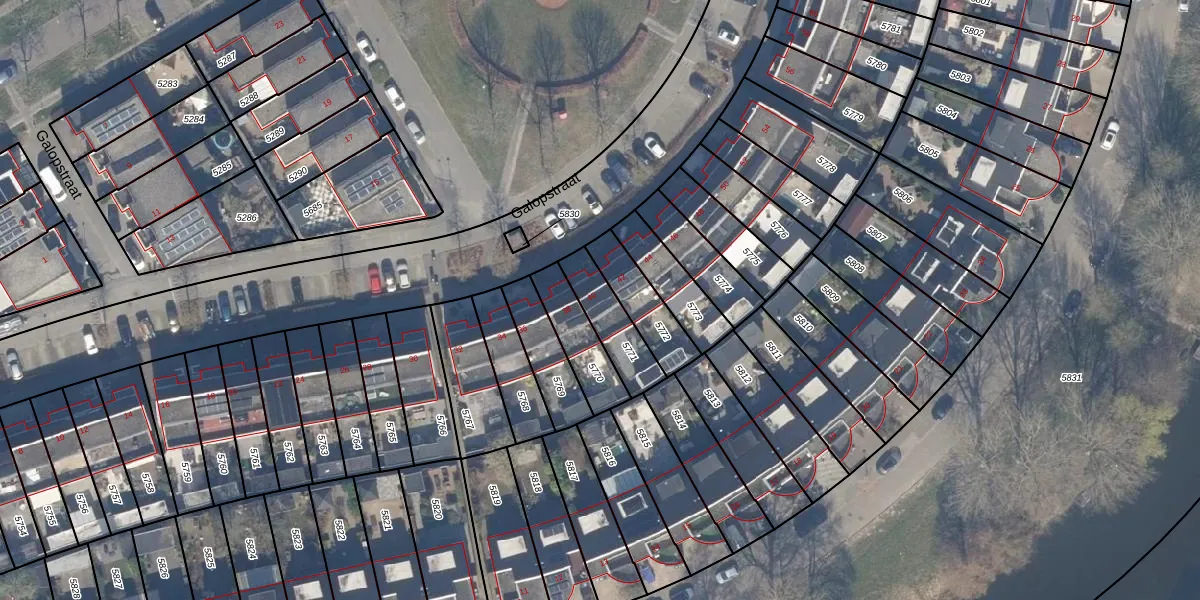 Het perceel waarop Galopstraat 40 staat heeft een oppervlakte van 157 m². Dit is een middelgroot perceel. De perceeloppervlakte wordt geregistreerd door het Kadaster. Gedetailleerde informatie over de maten van dit perceel kunt u vinden in het rapport Kadastrale kaart met maatvoering van Galopstraat 40.