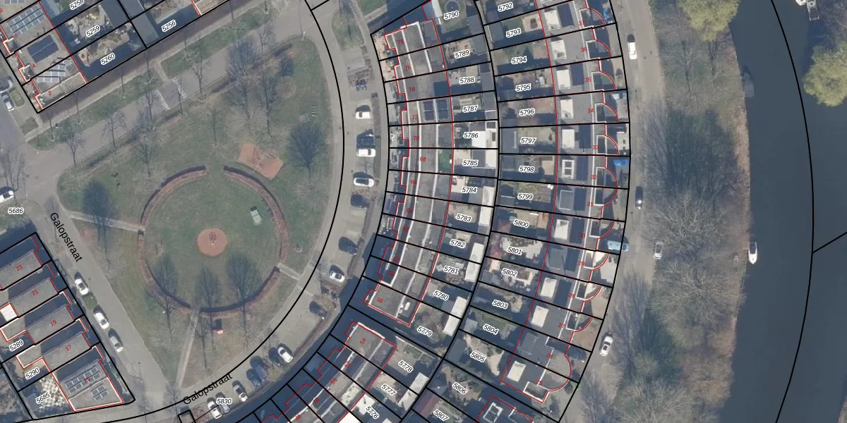 Het perceel waarop Galopstraat 64 staat heeft een oppervlakte van 157 m². Dit is een middelgroot perceel. De perceeloppervlakte wordt geregistreerd door het Kadaster. Gedetailleerde informatie over de maten van dit perceel kunt u vinden in het rapport Kadastrale kaart met maatvoering van Galopstraat 64.