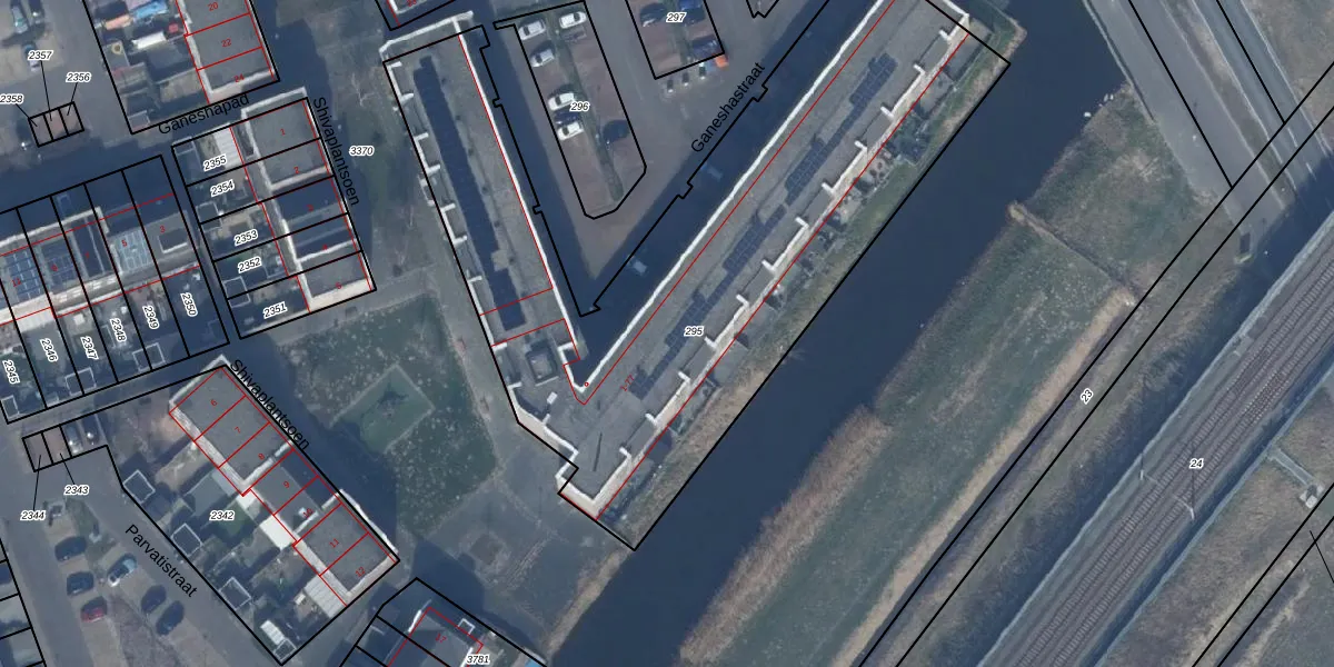 Het perceel waarop Ganeshastraat 38 staat heeft een oppervlakte van 3269 m². Dit is een zeer groot perceel. De perceeloppervlakte wordt geregistreerd door het Kadaster. Gedetailleerde informatie over de maten van dit perceel kunt u vinden in het rapport Kadastrale kaart met maatvoering van Ganeshastraat 38.