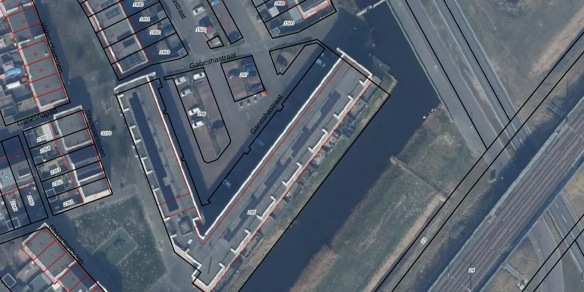 Het perceel waarop Ganeshastraat 42 staat heeft een oppervlakte van 3269 m². Dit is een zeer groot perceel. De perceeloppervlakte wordt geregistreerd door het Kadaster. Gedetailleerde informatie over de maten van dit perceel kunt u vinden in het rapport Kadastrale kaart met maatvoering van Ganeshastraat 42.