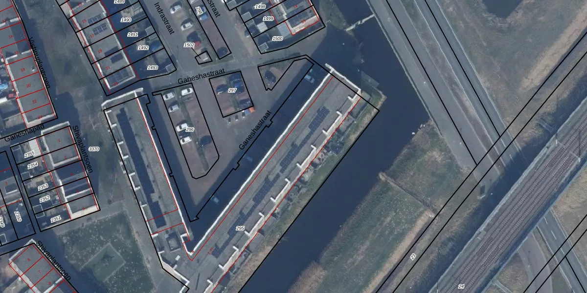 Het perceel waarop Ganeshastraat 43 staat heeft een oppervlakte van 3269 m². Dit is een zeer groot perceel. De perceeloppervlakte wordt geregistreerd door het Kadaster. Gedetailleerde informatie over de maten van dit perceel kunt u vinden in het rapport Kadastrale kaart met maatvoering van Ganeshastraat 43.
