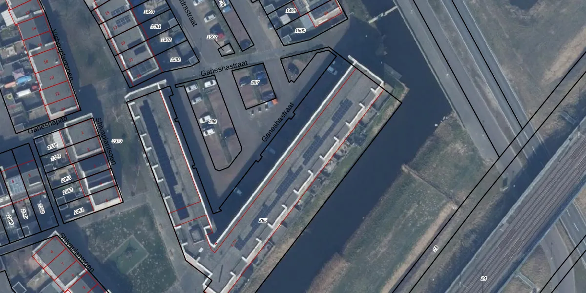 Het perceel waarop Ganeshastraat 73 staat heeft een oppervlakte van 3269 m². Dit is een zeer groot perceel. De perceeloppervlakte wordt geregistreerd door het Kadaster. Gedetailleerde informatie over de maten van dit perceel kunt u vinden in het rapport Kadastrale kaart met maatvoering van Ganeshastraat 73.