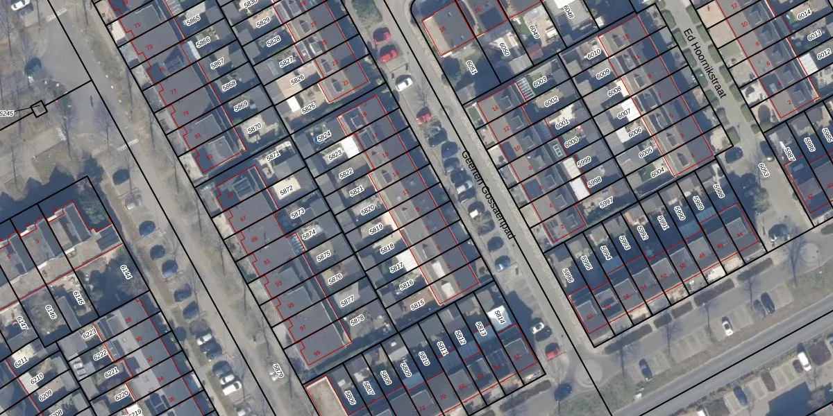 Geerten Gossaertpad 9 is gelegen op kadastraal perceel AMR04Q5819. Deze kadastrale aanduiding is uniek en wordt gebruikt door het Kadaster om eigendomsrechten en andere zakelijke rechten vast te leggen. Het perceel maakt onderdeel uit van de kadastrale gemeente Almere.