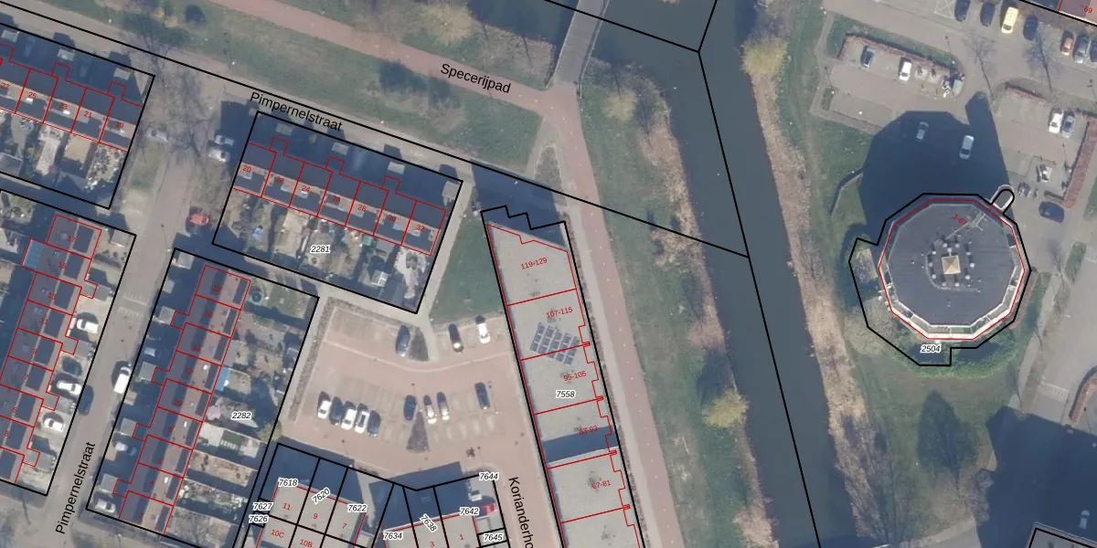 Het adres ligt op het perceel AMR04-O-7558, dat zich in de kadastrale gemeente Almere bevindt. Het perceel is kleiner dan gemiddeld in Almere. Het perceel is 953 m² groot, terwijl het gemiddelde ligt op 3328,15 m². Het grootste perceel in de kadastrale gemeente is 32,12 km². Het kleinste perceel heeft een oppervlakte van 0 m². Op het perceel zijn 38 adressen aanwezig. De huidige grenzen van het perceel zijn digitaal in de Basisregistratie Kadaster (BRK) geregistreerd op 17-10-2022.