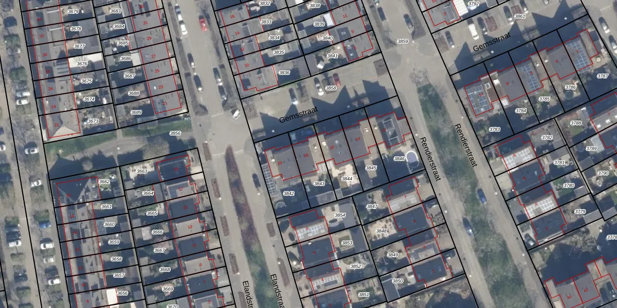Gebruik de zoekbalk of klik op een perceel voor informatie over de adressen binnen dit perceel.