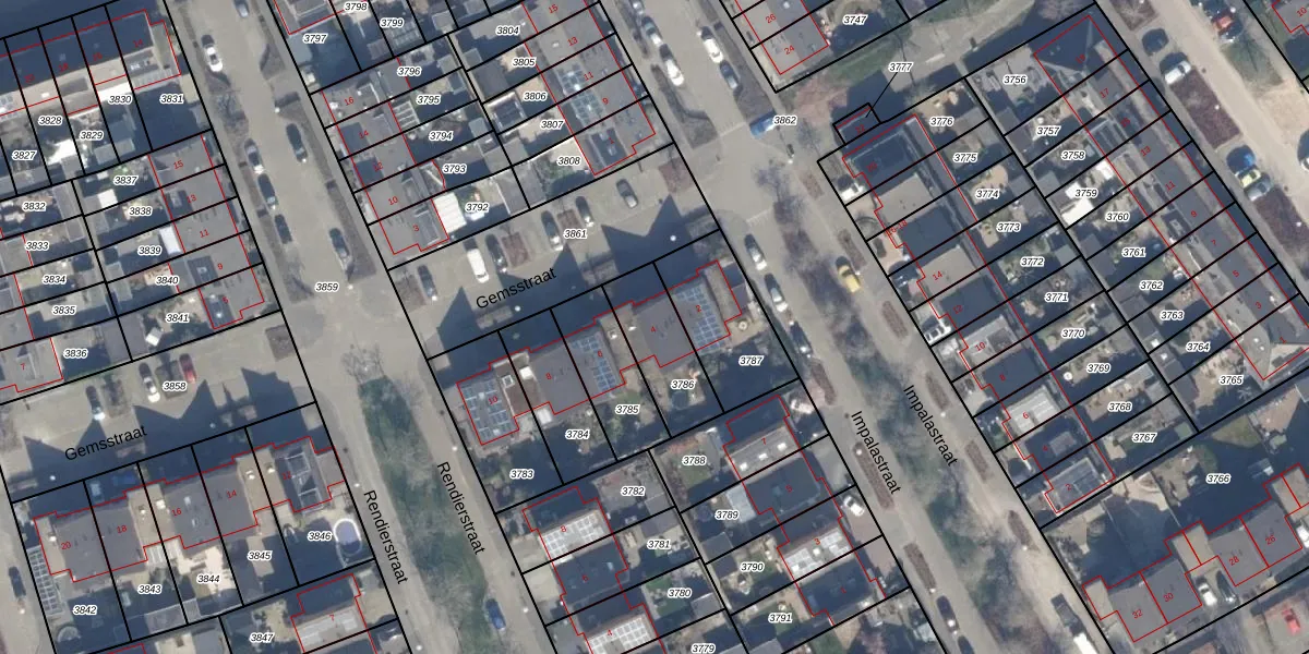 Het perceel waarop Gemsstraat 4 staat heeft een oppervlakte van 226 m². Dit is een middelgroot perceel. De perceeloppervlakte wordt geregistreerd door het Kadaster. Gedetailleerde informatie over de maten van dit perceel kunt u vinden in het rapport Kadastrale kaart met maatvoering van Gemsstraat 4.
