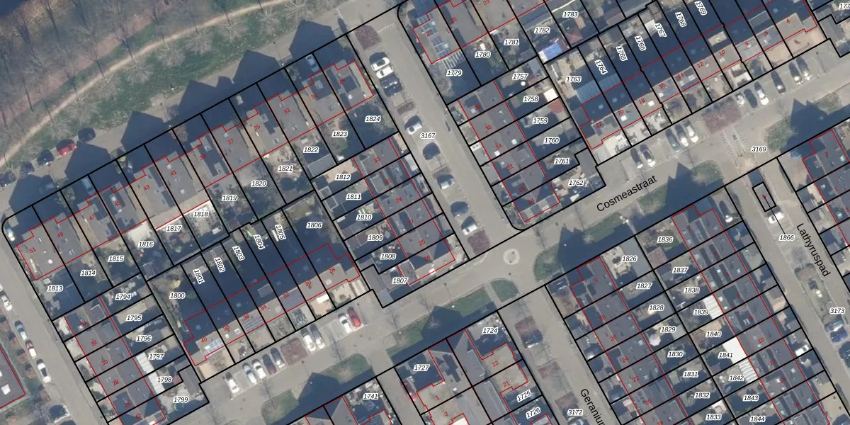 Het perceel waarop Geraniumstraat 27 staat heeft een oppervlakte van 129 m². Dit is een middelgroot perceel. De perceeloppervlakte wordt geregistreerd door het Kadaster. Gedetailleerde informatie over de maten van dit perceel kunt u vinden in het rapport Kadastrale kaart met maatvoering van Geraniumstraat 27.