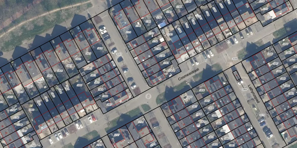 Gebruik de zoekbalk of klik op een perceel voor informatie over de adressen binnen dit perceel.