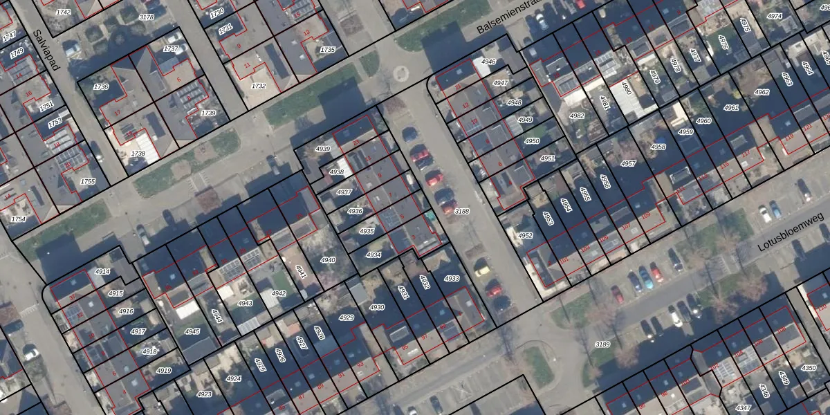Gebruik de zoekbalk of klik op een perceel voor informatie over de adressen binnen dit perceel.