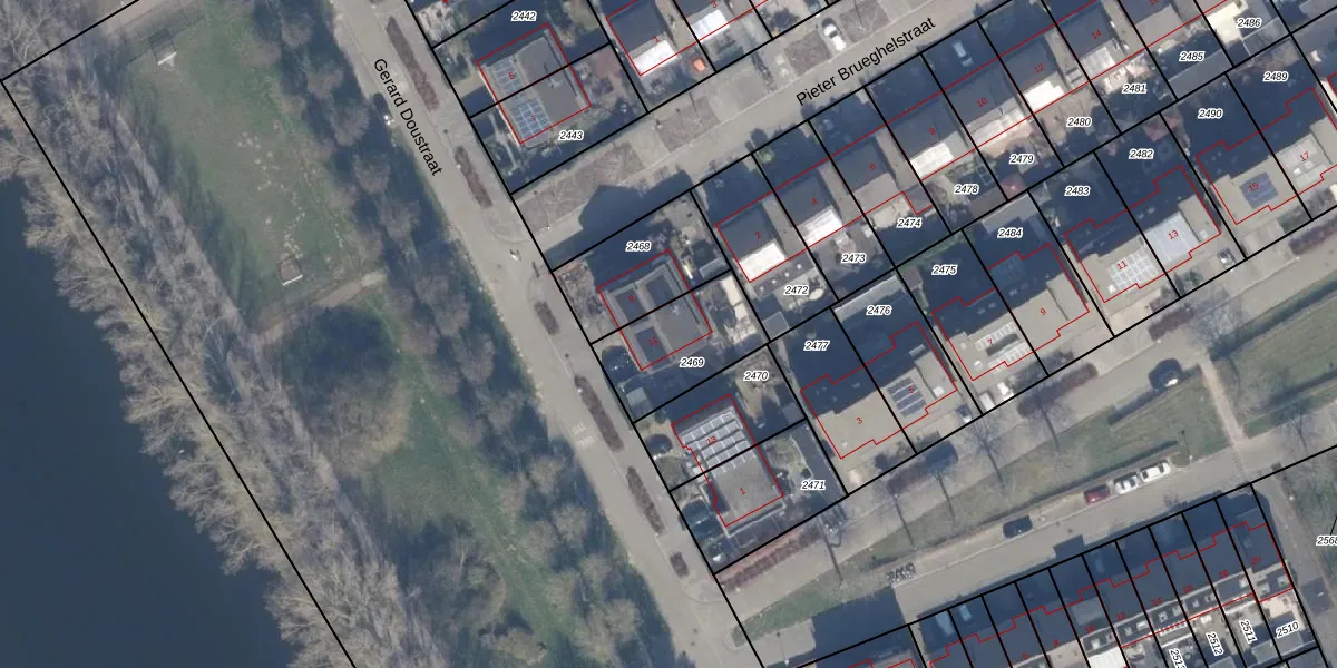 Gebruik de zoekbalk of klik op een perceel voor informatie over de adressen binnen dit perceel.