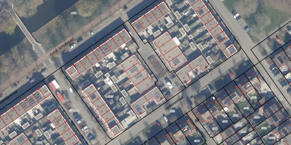 Het perceel waarop Gerberastraat 31 staat heeft een oppervlakte van 3060 m². Dit is een zeer groot perceel. De perceeloppervlakte wordt geregistreerd door het Kadaster. Gedetailleerde informatie over de maten van dit perceel kunt u vinden in het rapport Kadastrale kaart met maatvoering van Gerberastraat 31.