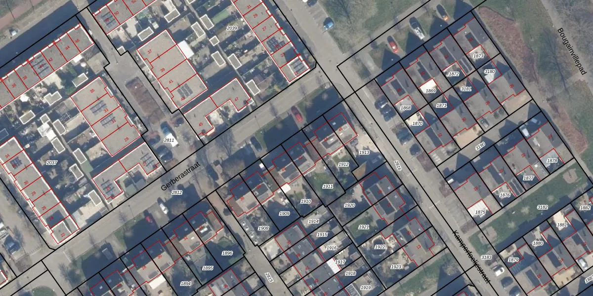 Gebruik de zoekbalk of klik op een perceel voor informatie over de adressen binnen dit perceel.