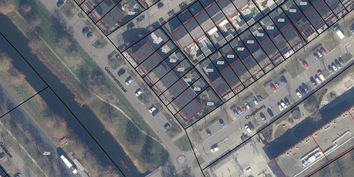 Het perceel waarop Giacomettistraat 23 staat heeft een oppervlakte van 182 m². Dit is een middelgroot perceel. De perceeloppervlakte wordt geregistreerd door het Kadaster. Gedetailleerde informatie over de maten van dit perceel kunt u vinden in het rapport Kadastrale kaart met maatvoering van Giacomettistraat 23.