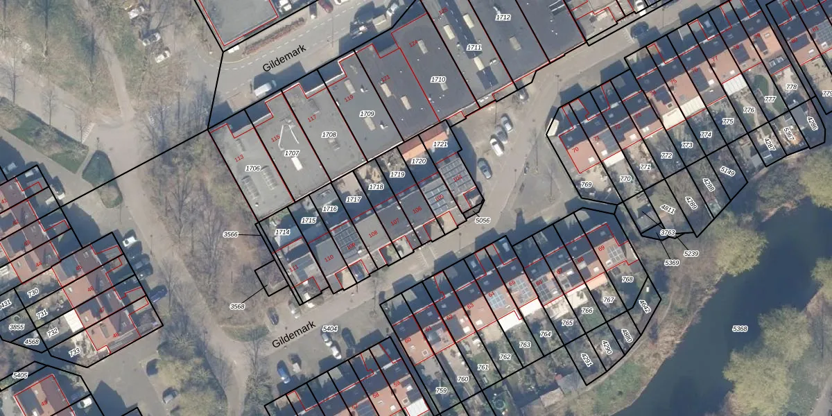 Gildemark 106 is gelegen op kadastraal perceel AMR04G1719. Deze kadastrale aanduiding is uniek en wordt gebruikt door het Kadaster om eigendomsrechten en andere zakelijke rechten vast te leggen. Het perceel maakt onderdeel uit van de kadastrale gemeente Almere.