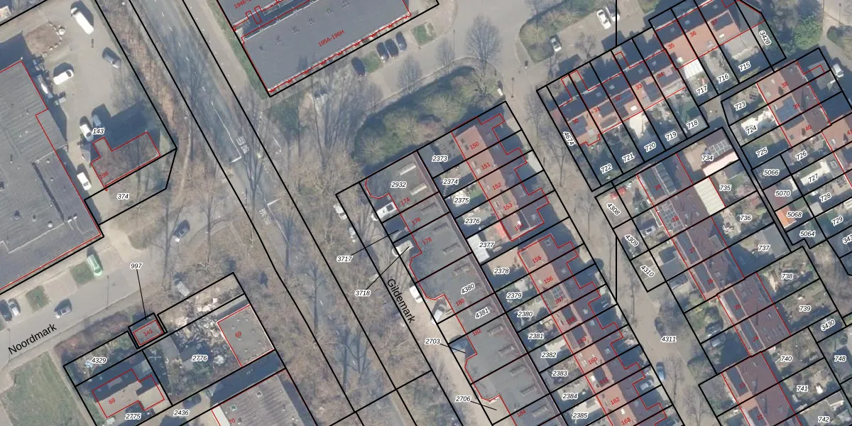 Het perceel waarop Gildemark 176 staat heeft een oppervlakte van 83 m². Dit is een klein perceel. De perceeloppervlakte wordt geregistreerd door het Kadaster. Gedetailleerde informatie over de maten van dit perceel kunt u vinden in het rapport Kadastrale kaart met maatvoering van Gildemark 176.