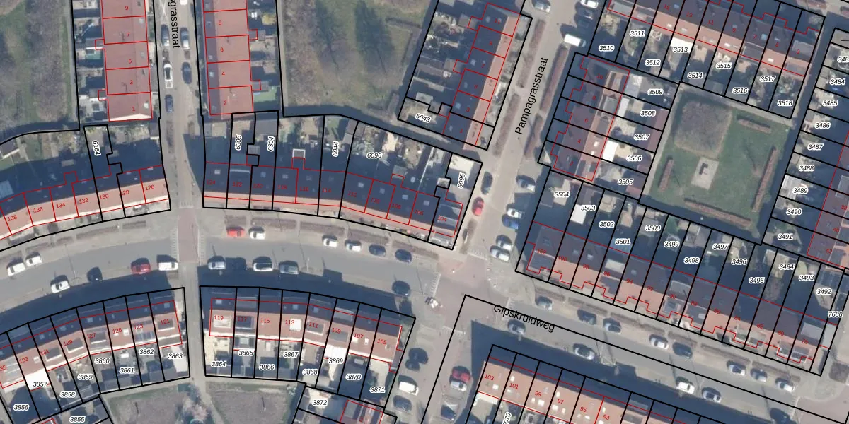 Gipskruidweg 106 is gelegen op kadastraal perceel AMR04O6096. Deze kadastrale aanduiding is uniek en wordt gebruikt door het Kadaster om eigendomsrechten en andere zakelijke rechten vast te leggen. Het perceel maakt onderdeel uit van de kadastrale gemeente Almere.