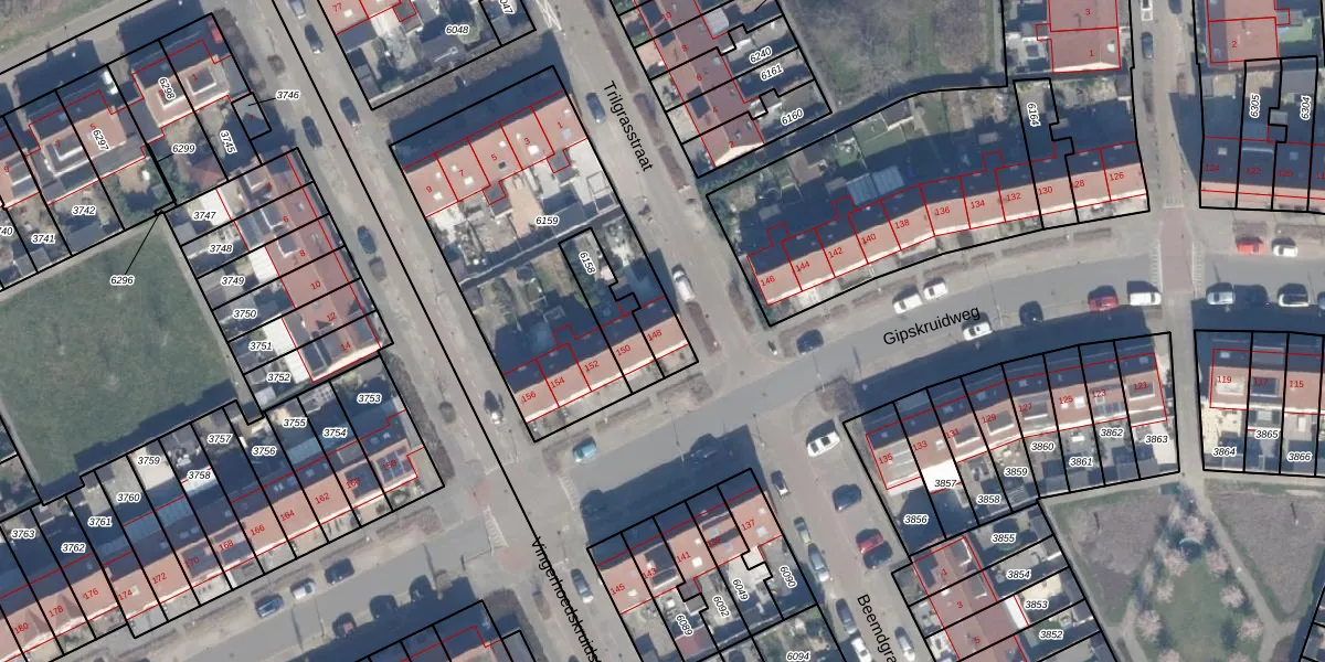 Het perceel waarop Gipskruidweg 148 staat heeft een oppervlakte van 1231 m². Dit is een zeer groot perceel. De perceeloppervlakte wordt geregistreerd door het Kadaster. Gedetailleerde informatie over de maten van dit perceel kunt u vinden in het rapport Kadastrale kaart met maatvoering van Gipskruidweg 148.