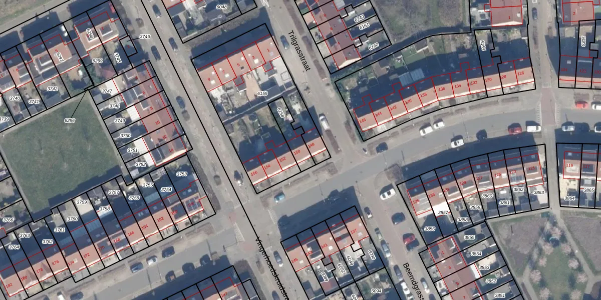 Gebruik de zoekbalk of klik op een perceel voor informatie over de adressen binnen dit perceel.