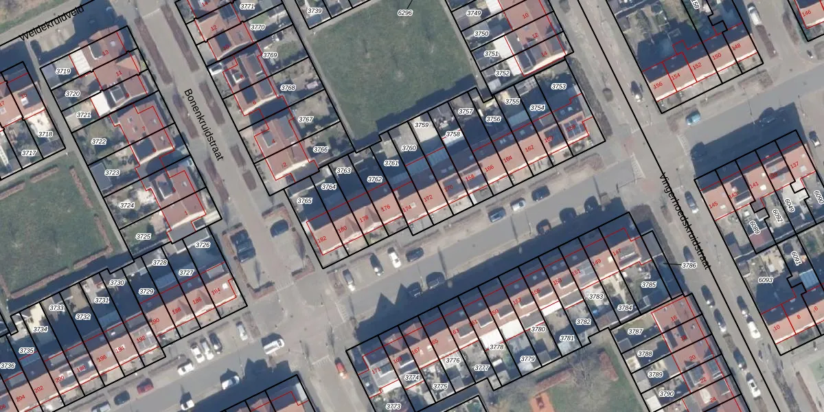 Gebruik de zoekbalk of klik op een perceel voor informatie over de adressen binnen dit perceel.