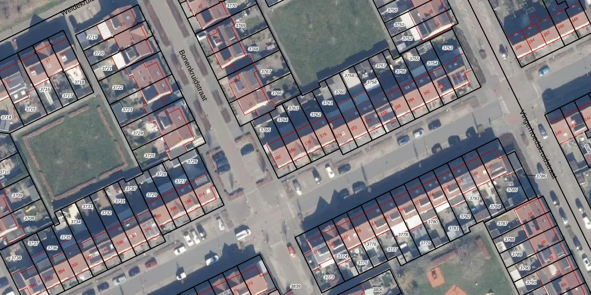 Het perceel waarop Gipskruidweg 180 staat heeft een oppervlakte van 118 m². Dit is een middelgroot perceel. De perceeloppervlakte wordt geregistreerd door het Kadaster. Gedetailleerde informatie over de maten van dit perceel kunt u vinden in het rapport Kadastrale kaart met maatvoering van Gipskruidweg 180.