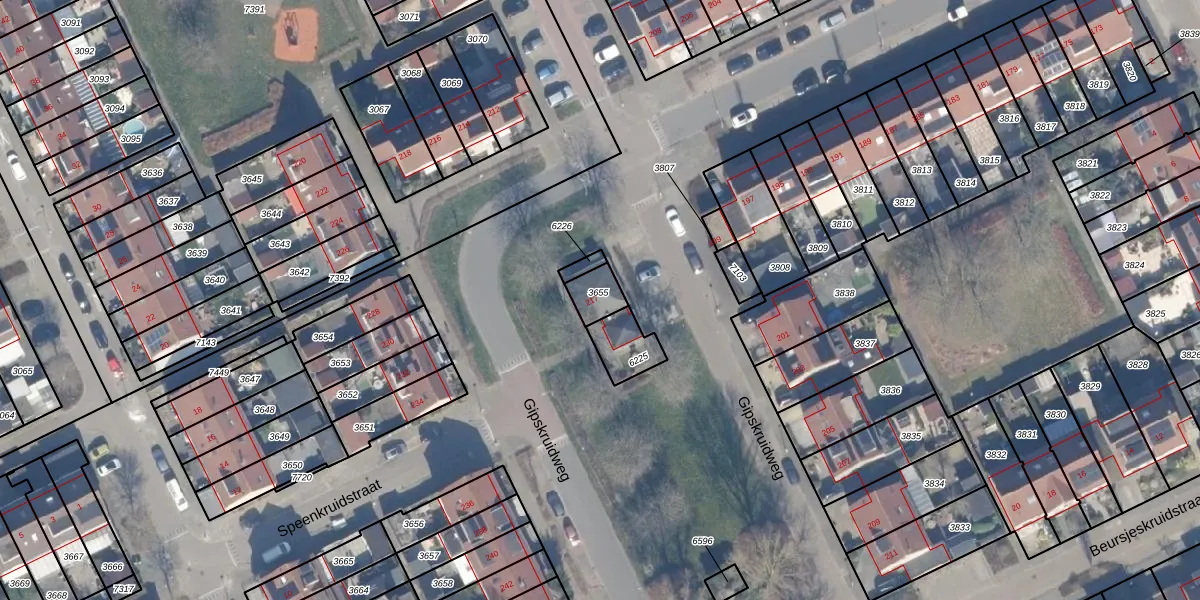 Gipskruidweg 217 is gelegen op kadastraal perceel AMR04O3655. Deze kadastrale aanduiding is uniek en wordt gebruikt door het Kadaster om eigendomsrechten en andere zakelijke rechten vast te leggen. Het perceel maakt onderdeel uit van de kadastrale gemeente Almere.