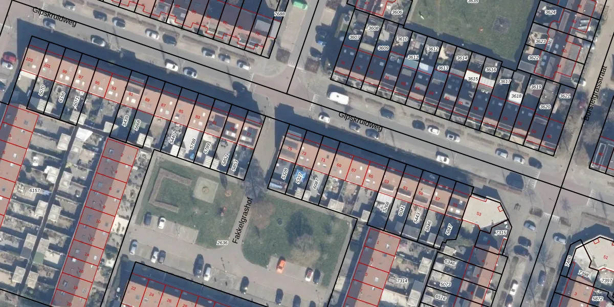 Gebruik de zoekbalk of klik op een perceel voor informatie over de adressen binnen dit perceel.