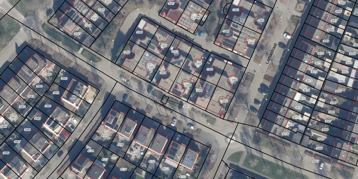 Giraffeweg 108 is gelegen op kadastraal perceel AMR04N3356. Deze kadastrale aanduiding is uniek en wordt gebruikt door het Kadaster om eigendomsrechten en andere zakelijke rechten vast te leggen. Het perceel maakt onderdeel uit van de kadastrale gemeente Almere.