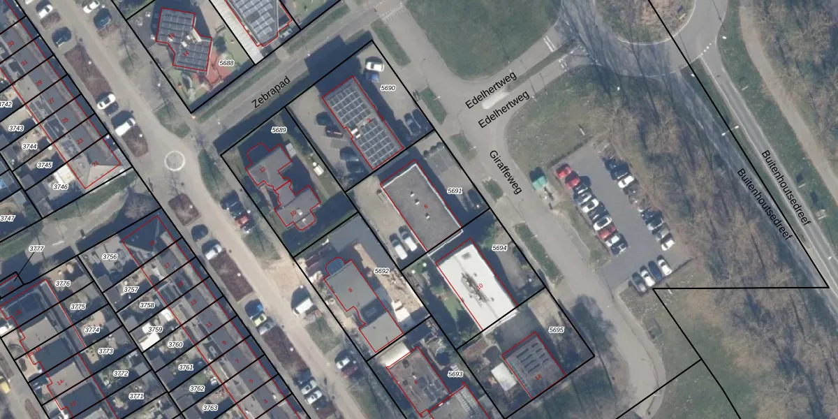 Het perceel waarop Giraffeweg 6 staat heeft een oppervlakte van 603 m². Dit is een groot perceel. De perceeloppervlakte wordt geregistreerd door het Kadaster. Gedetailleerde informatie over de maten van dit perceel kunt u vinden in het rapport Kadastrale kaart met maatvoering van Giraffeweg 6.