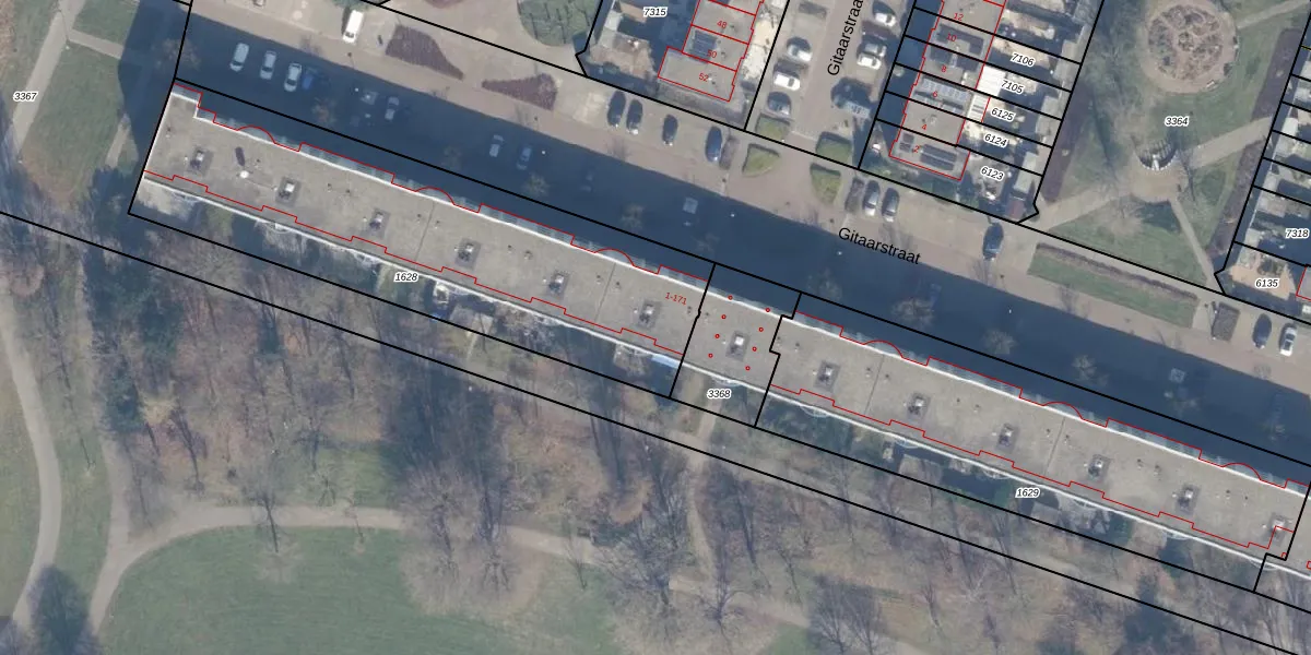 Het perceel waarop Gitaarstraat 101 staat heeft een oppervlakte van 1905 m². Dit is een zeer groot perceel. De perceeloppervlakte wordt geregistreerd door het Kadaster. Gedetailleerde informatie over de maten van dit perceel kunt u vinden in het rapport Kadastrale kaart met maatvoering van Gitaarstraat 101.