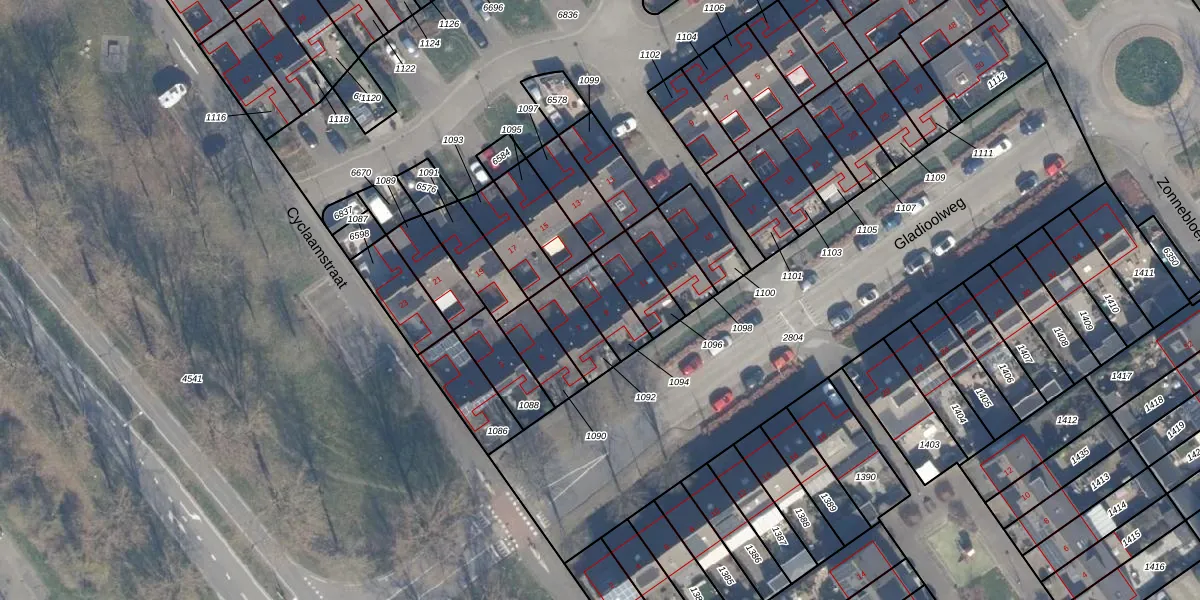 Het perceel waarop Gladioolweg 9 staat heeft een oppervlakte van 115 m². Dit is een middelgroot perceel. De perceeloppervlakte wordt geregistreerd door het Kadaster. Gedetailleerde informatie over de maten van dit perceel kunt u vinden in het rapport Kadastrale kaart met maatvoering van Gladioolweg 9.