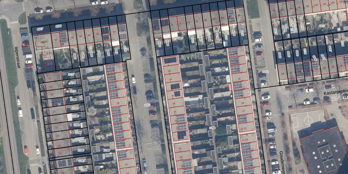 Het perceel waarop Gleditsiastraat 32 staat heeft een oppervlakte van 5191 m². Dit is een zeer groot perceel. De perceeloppervlakte wordt geregistreerd door het Kadaster. Gedetailleerde informatie over de maten van dit perceel kunt u vinden in het rapport Kadastrale kaart met maatvoering van Gleditsiastraat 32.