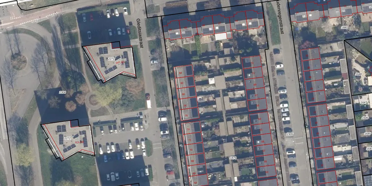 Het perceel waarop Gleditsiastraat 80 staat heeft een oppervlakte van 6739 m². Dit is een zeer groot perceel. De perceeloppervlakte wordt geregistreerd door het Kadaster. Gedetailleerde informatie over de maten van dit perceel kunt u vinden in het rapport Kadastrale kaart met maatvoering van Gleditsiastraat 80.