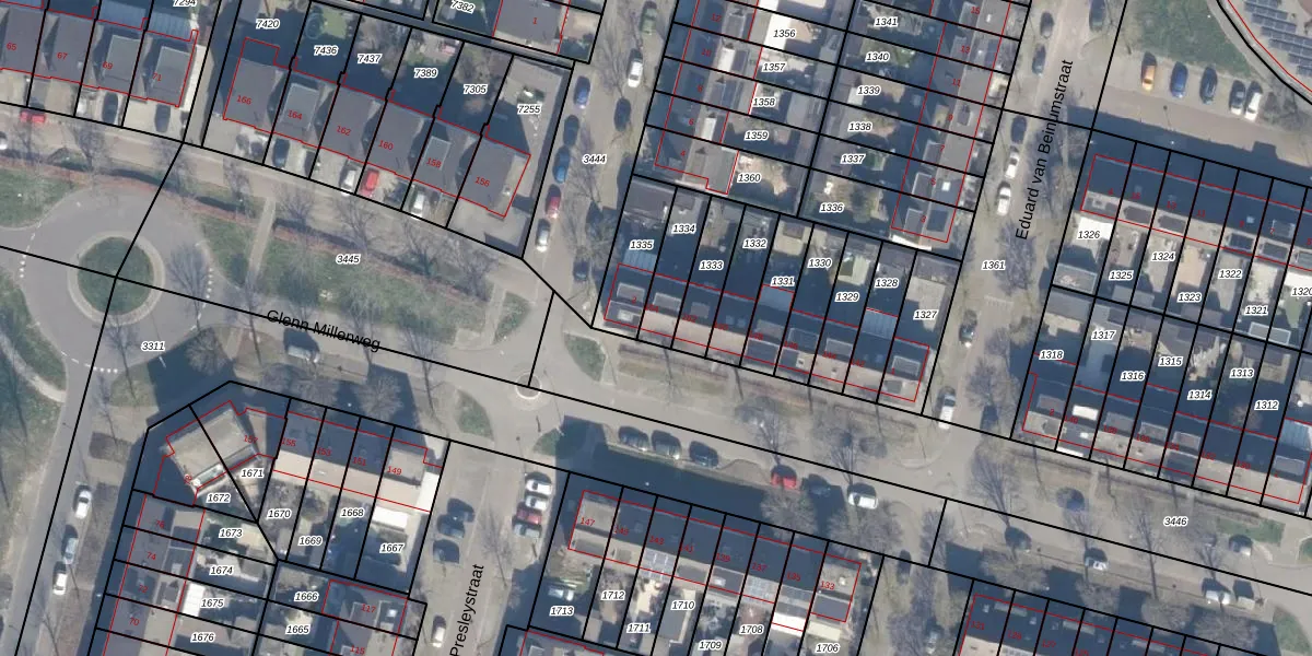 Glenn Millerweg 154 is gelegen op kadastraal perceel AMR04Q1334. Deze kadastrale aanduiding is uniek en wordt gebruikt door het Kadaster om eigendomsrechten en andere zakelijke rechten vast te leggen. Het perceel maakt onderdeel uit van de kadastrale gemeente Almere.