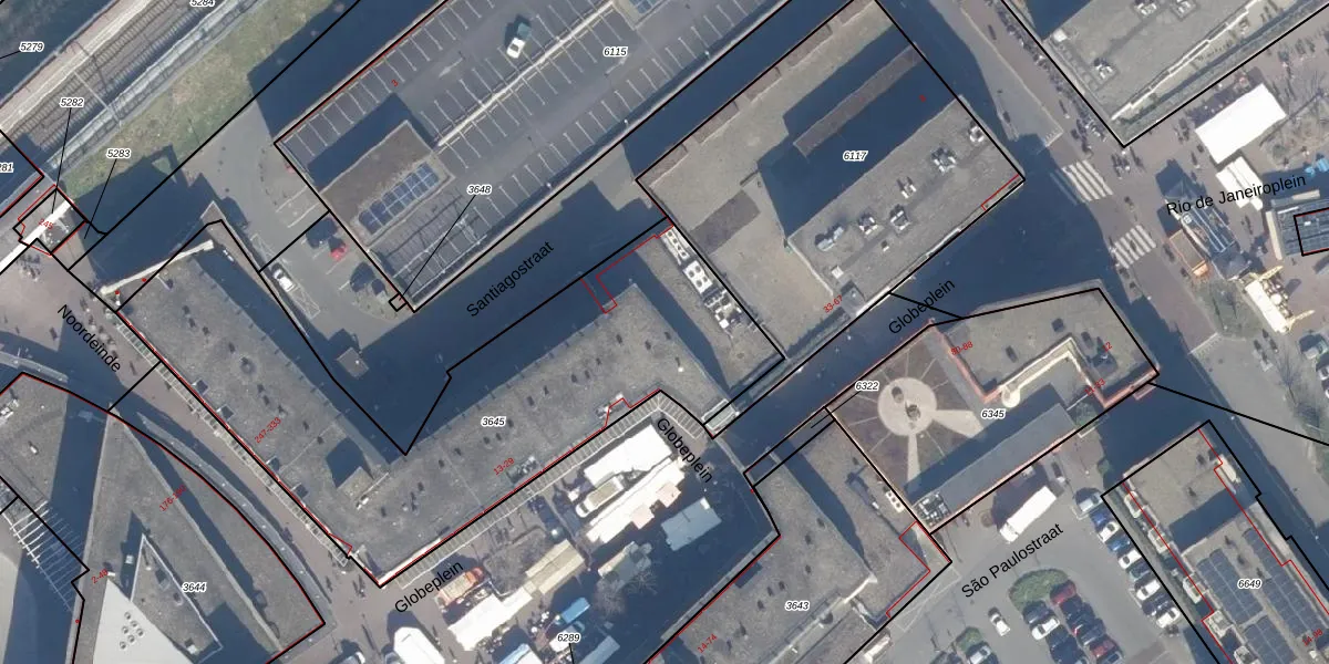 Het perceel waarop Globeplein 29 staat heeft een oppervlakte van 2230 m². Dit is een zeer groot perceel. De perceeloppervlakte wordt geregistreerd door het Kadaster. Gedetailleerde informatie over de maten van dit perceel kunt u vinden in het rapport Kadastrale kaart met maatvoering van Globeplein 29.