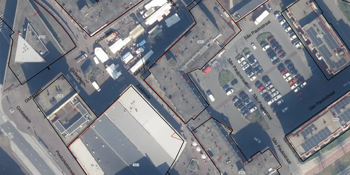 Het perceel waarop Globeplein 40 staat heeft een oppervlakte van 1679 m². Dit is een zeer groot perceel. De perceeloppervlakte wordt geregistreerd door het Kadaster. Gedetailleerde informatie over de maten van dit perceel kunt u vinden in het rapport Kadastrale kaart met maatvoering van Globeplein 40.