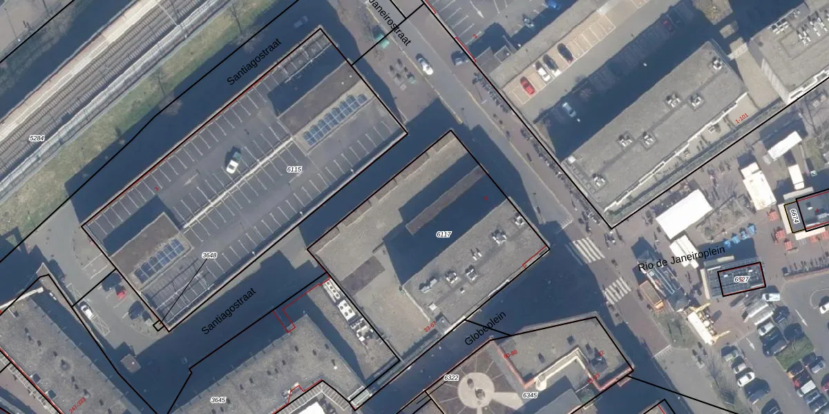 Het perceel waarop Globeplein 43 staat heeft een oppervlakte van 1720 m². Dit is een zeer groot perceel. De perceeloppervlakte wordt geregistreerd door het Kadaster. Gedetailleerde informatie over de maten van dit perceel kunt u vinden in het rapport Kadastrale kaart met maatvoering van Globeplein 43.