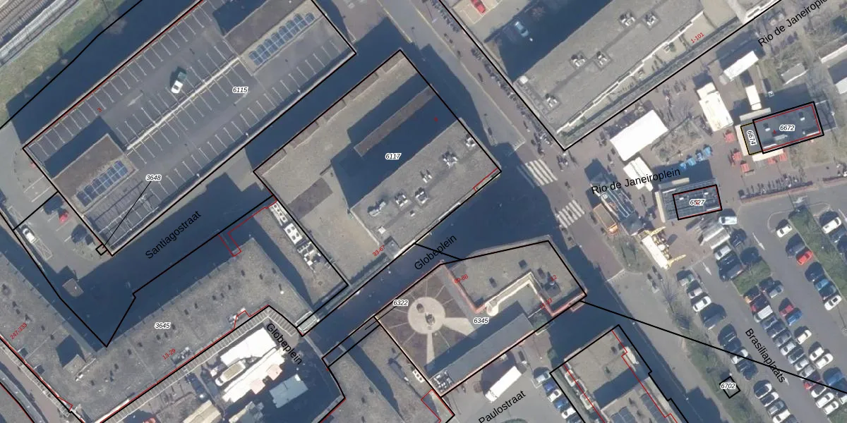 Het perceel waarop Globeplein 63 staat heeft een oppervlakte van 1720 m². Dit is een zeer groot perceel. De perceeloppervlakte wordt geregistreerd door het Kadaster. Gedetailleerde informatie over de maten van dit perceel kunt u vinden in het rapport Kadastrale kaart met maatvoering van Globeplein 63.
