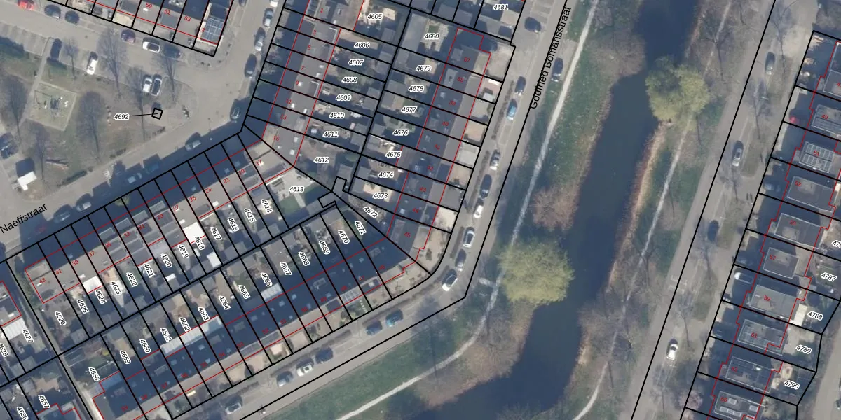 Het perceel waarop Godfried Bomansstraat 44 staat heeft een oppervlakte van 135 m². Dit is een middelgroot perceel. De perceeloppervlakte wordt geregistreerd door het Kadaster. Gedetailleerde informatie over de maten van dit perceel kunt u vinden in het rapport Kadastrale kaart met maatvoering van Godfried Bomansstraat 44.